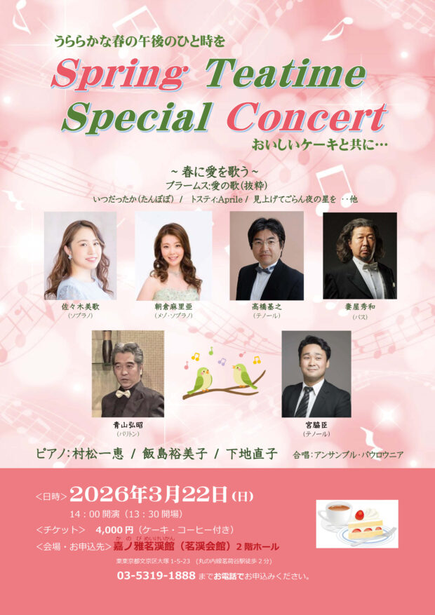 下記の日程で、Spring Teatime Special Concert を開催いたします。